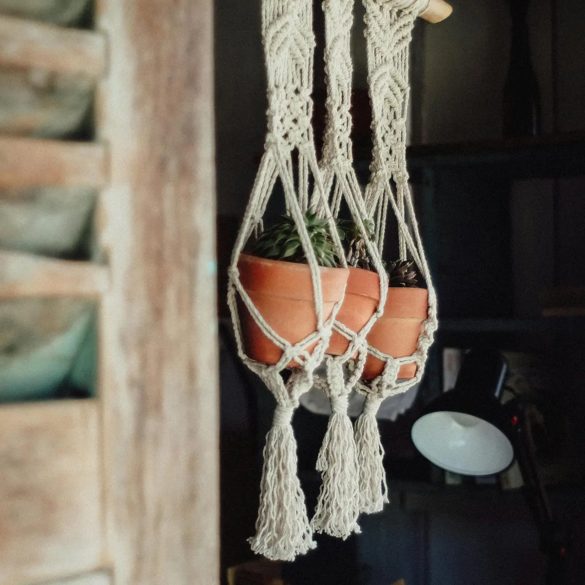 Suspension pour plantes ou suspensions décoratives, attrape-soleil, couronnes ou encore porte-clés, l'univers du macramé est vaste et chaque atelier sera dédié à un objet précis qui vous sera dévoilé au fur et à mesure.