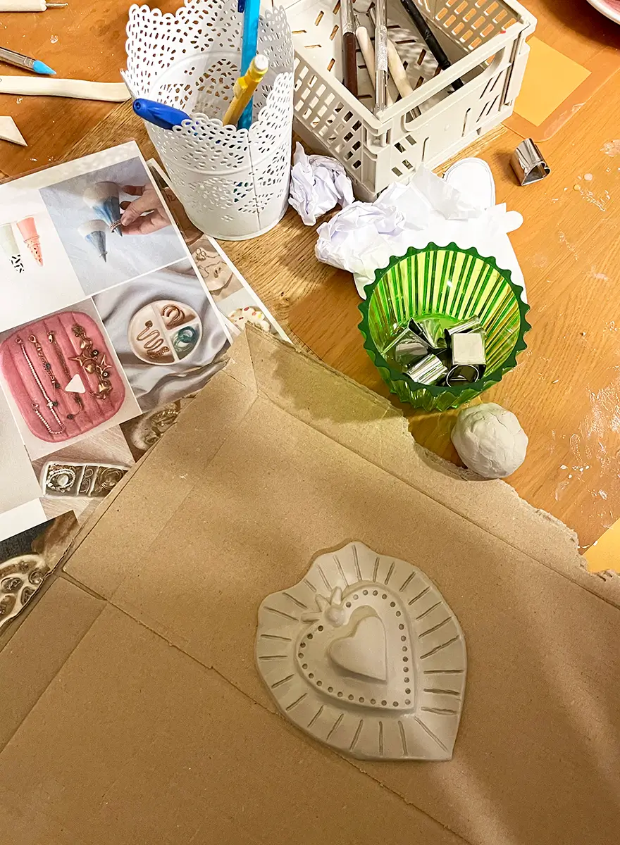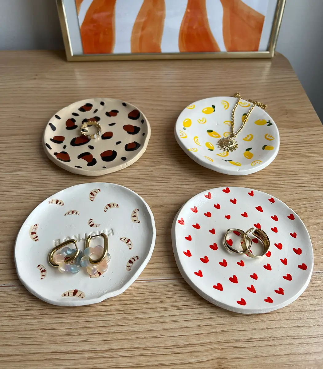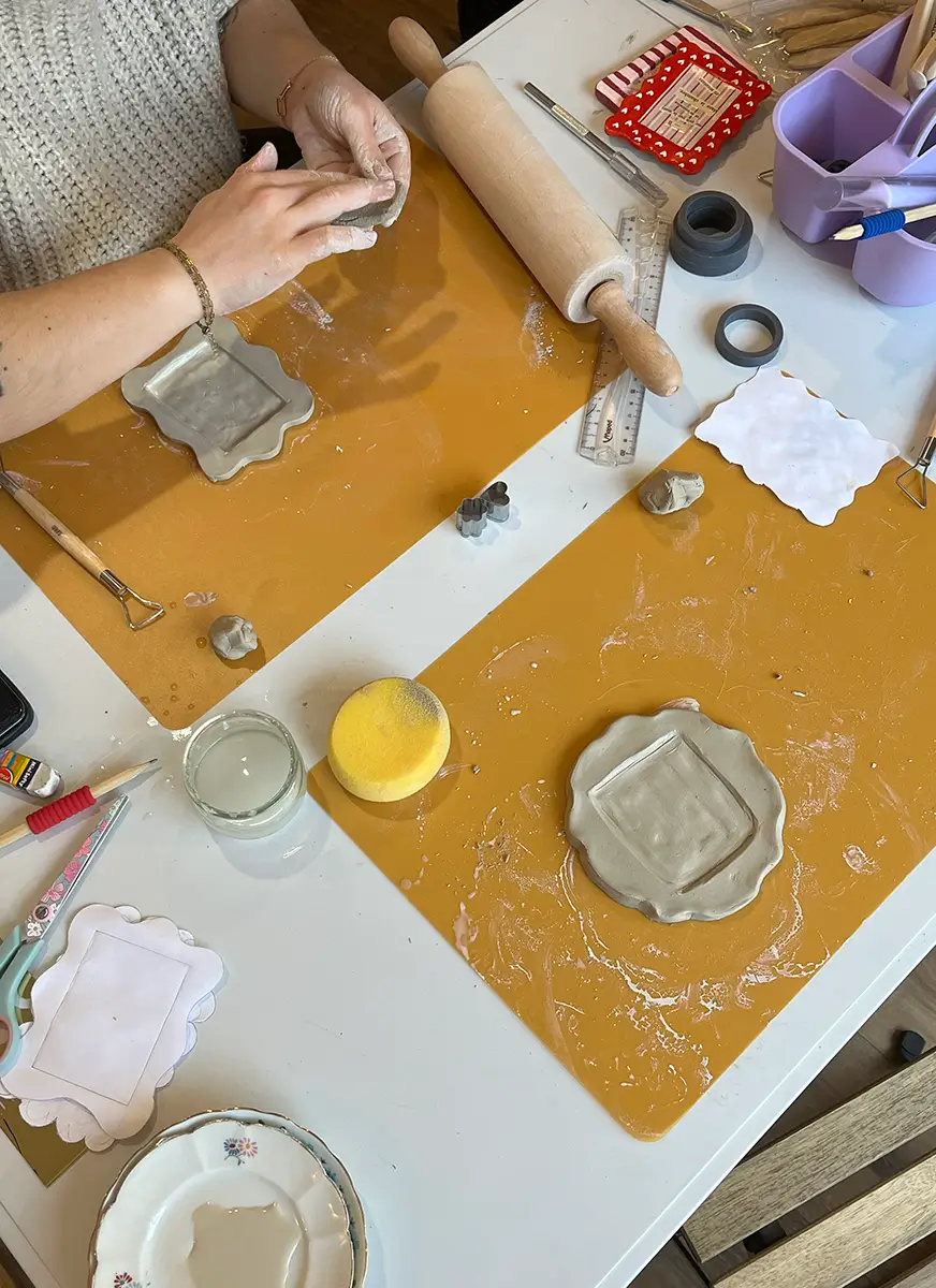Accompagné.e pas à pas, tu réaliseras la création de ton choix en argile autodurcissante : coupelle, suspension, porte-photo, objet décoratif, jeu morpion... Je t'aide à trouver ton projet avec différentes fiches d'inspirations. Débutant ou non, je t'accompagne avec des conseils pour te guider selon ton niveau.