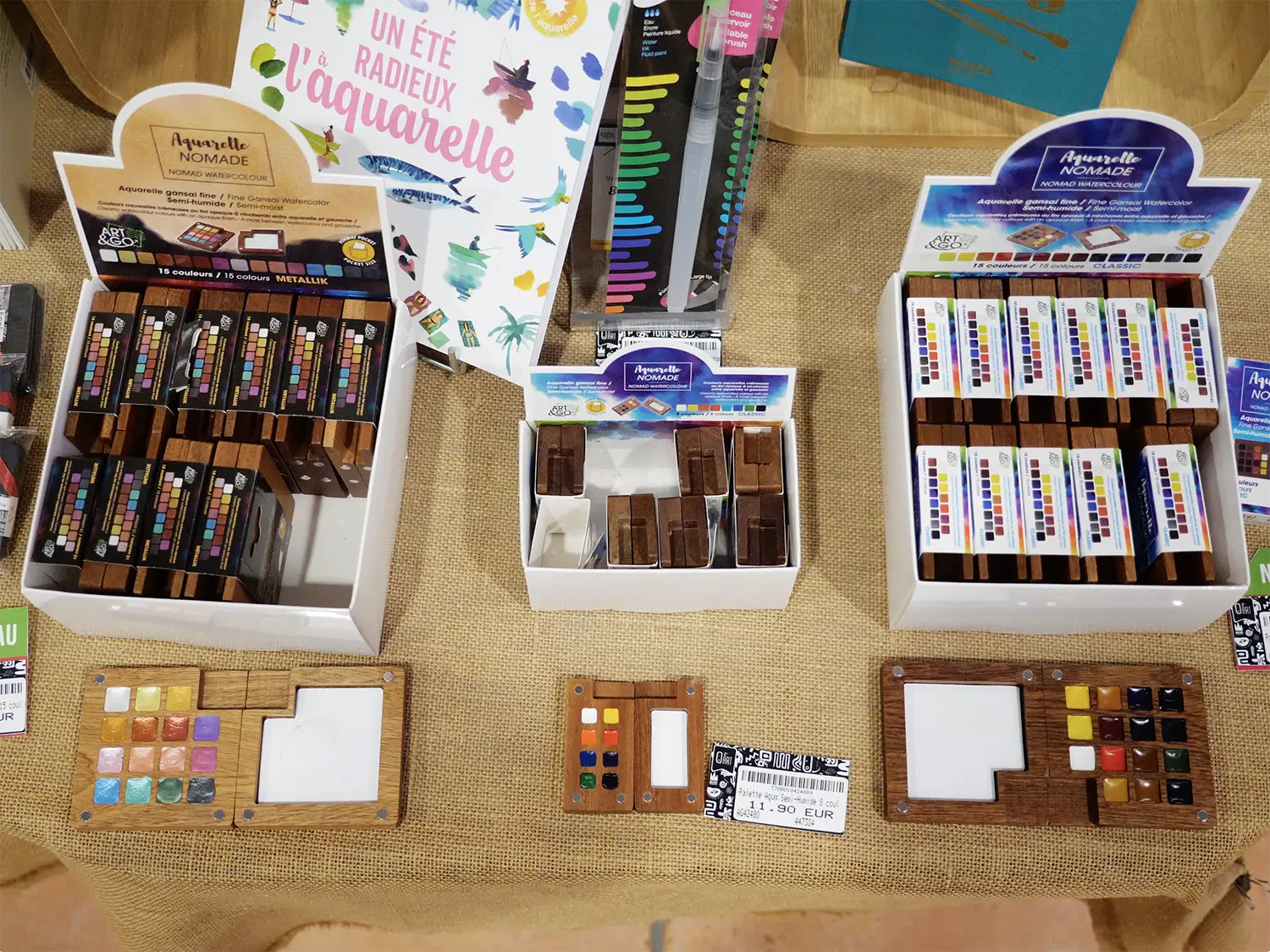 Les mini palettes nomades en bois aquarelle Gansai sont idéales pour les artistes en mouvement. Ultra-compactes et légères, elles tiennent dans la main, la poche, le sac à dos, sac à main… Aimantées pour s’accrocher en un clic que ce soit pour la fermer où la maintenir ouverte à plat.